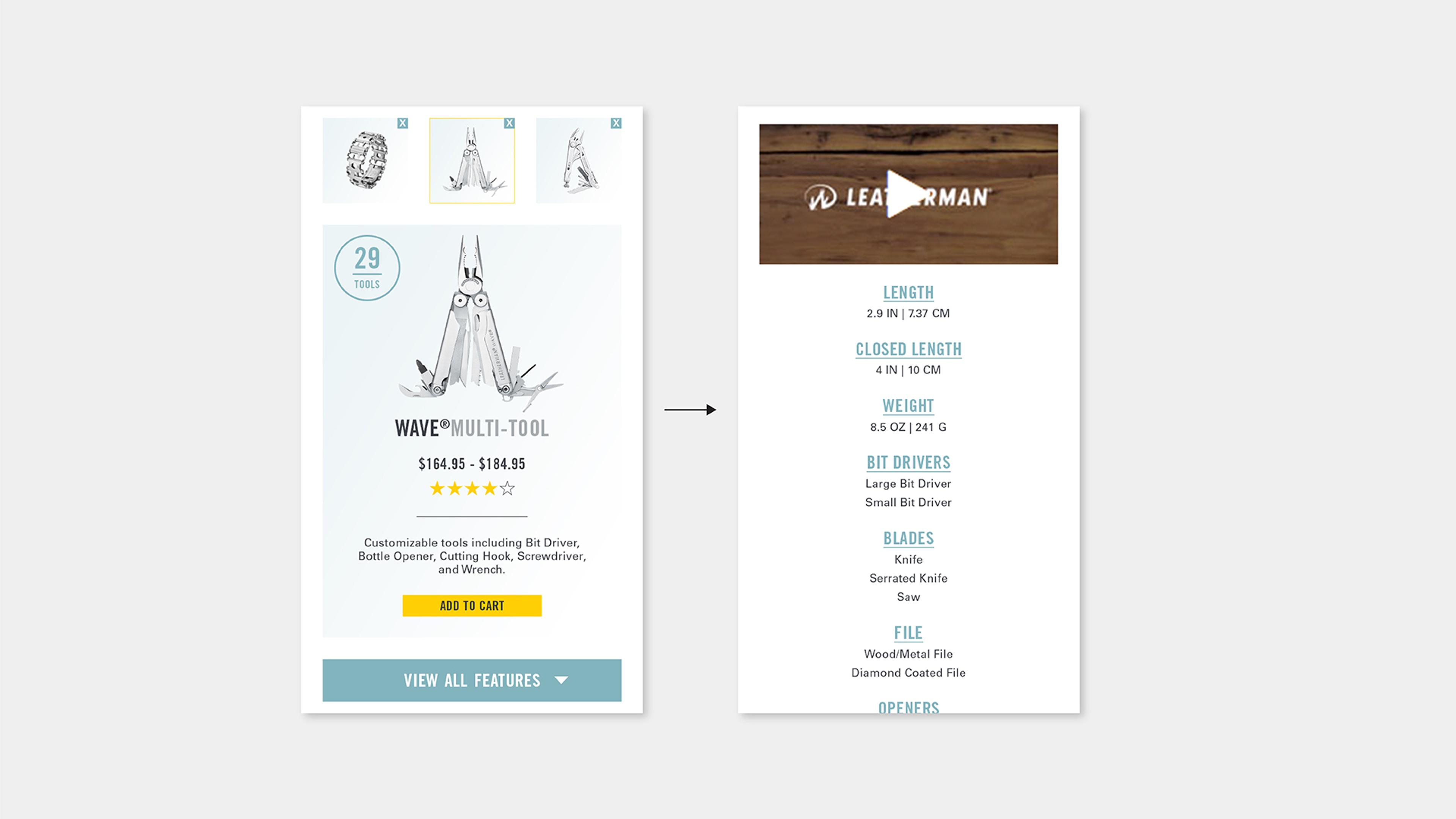 Visitors to the Leatherman website needed a way to identify the differences in features between products that were visually similar.